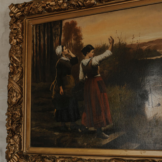 Antique 1888 Oil Painting on Canvas – Study After François B. de Blois