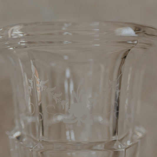 Vintage Tiffany & Co. Crystal Urn Vase with Frosted Floral Etchings