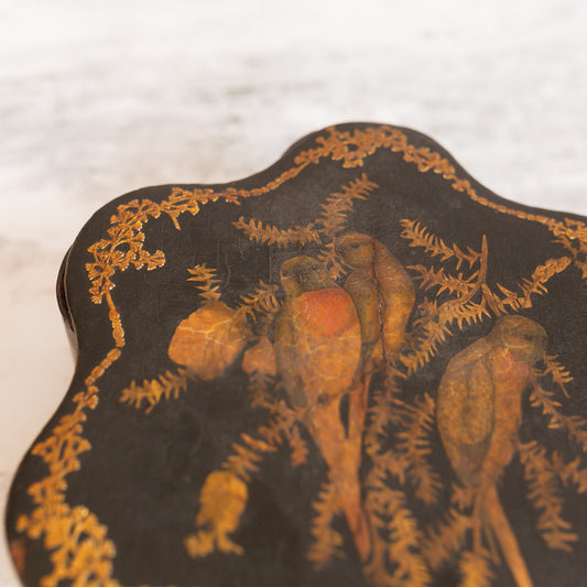 Antique Rotating Wooden Spice Box with Parrot Lid