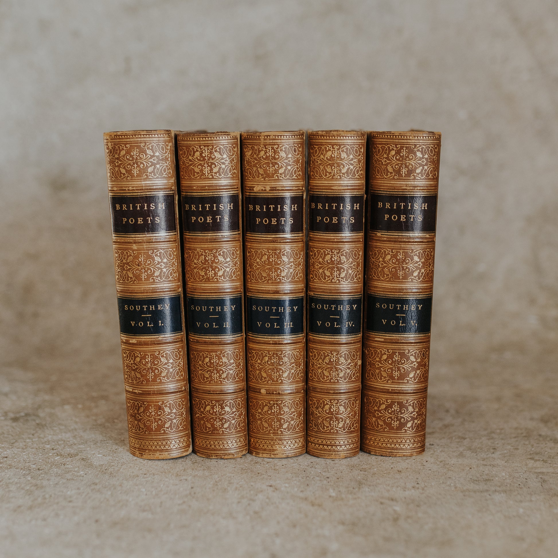 Antique Leather-Bound Set – The British Poets: Robert Southey (c. 1884, Complete in Five Volumes)
